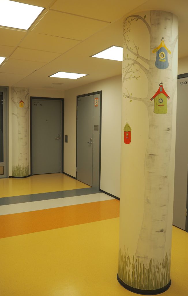 - 2025 Koivu/linnunpönttö-aiheiset seinämaalaukset, kahdelle eri osastolle käytävien pylväisiin, yhteensä kuuteen pylvääseen tuli yhdeksän koivua, joissa oli eri kokoisia värikkäitä linnunpönttöjä. Yhdelle osastolle tuli yhteen huoneen seinälle tuli värikäs tunnepuu.