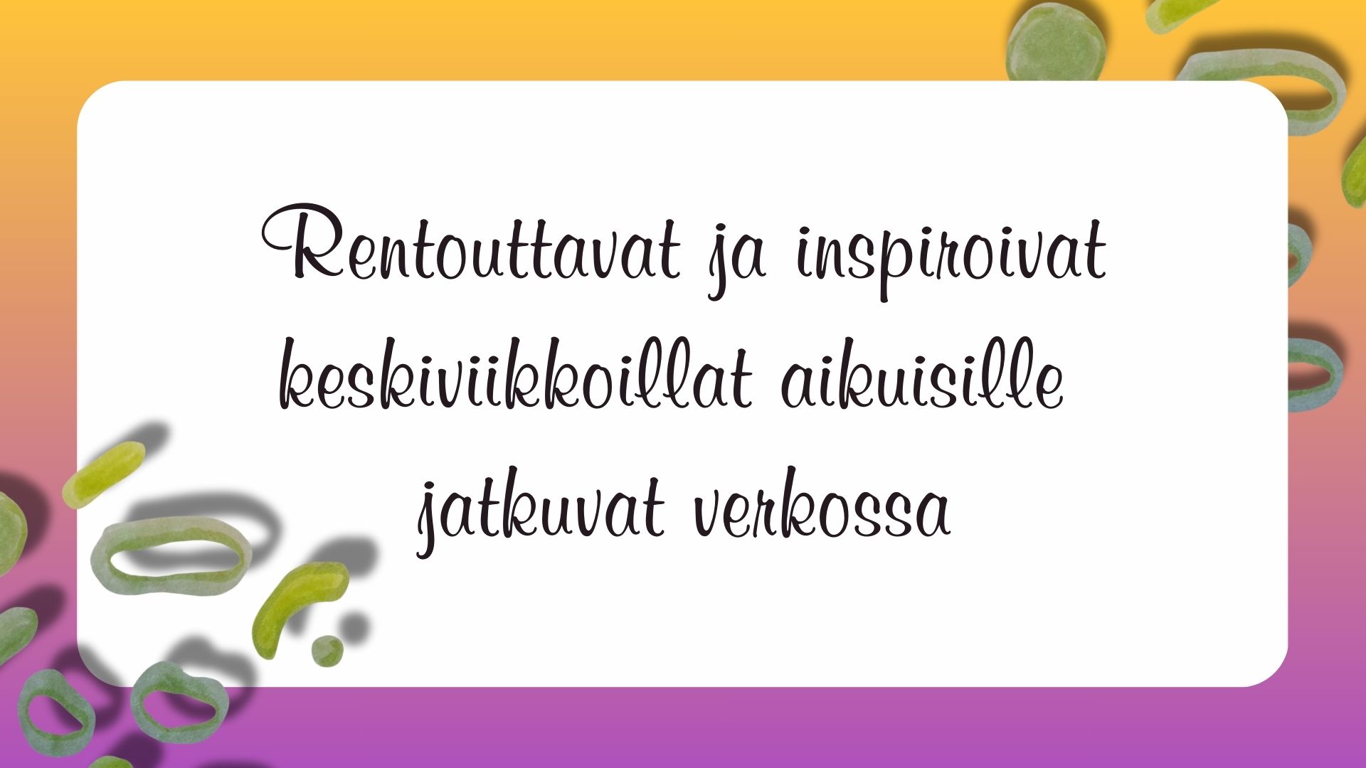 Rentouttavat ja inspiroivat keskiviikkoillat verkossa